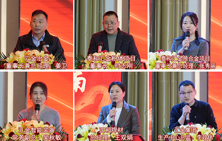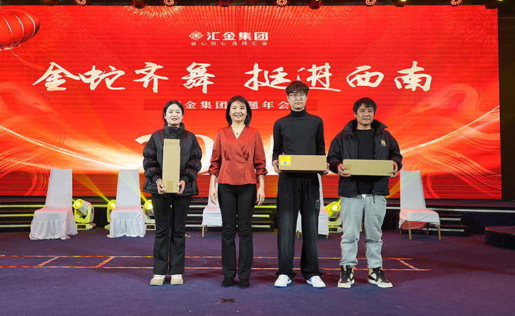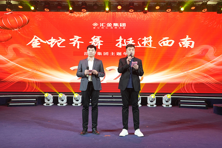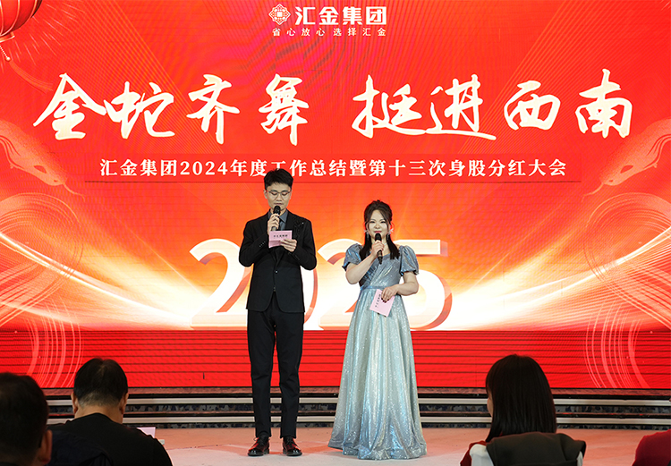 2025年1月20日下午,汇金集团2025年“金蛇齐舞·挺进西南”主题年会在悦喜·爱妃堡宴会中心成功举行。汇金集团董事长郭荣勋、ceo兼总裁孔攀红、中高层管理人员及汇金员工共同参加了这一盛会。武陟县工商联秘书长李中利、石家庄海川工具有限公司董事长赵士斌、焦作万瑞工贸有限公司董事长岳小芳、河南亚兴精锻股份有限公司董事长班兴建、焦作市汉诺威智能科技有限公司董事长牛梦雨等受邀出席了本次年会。