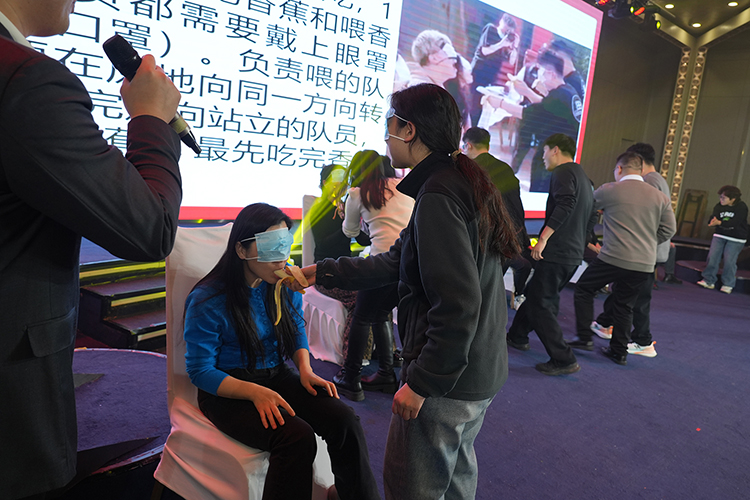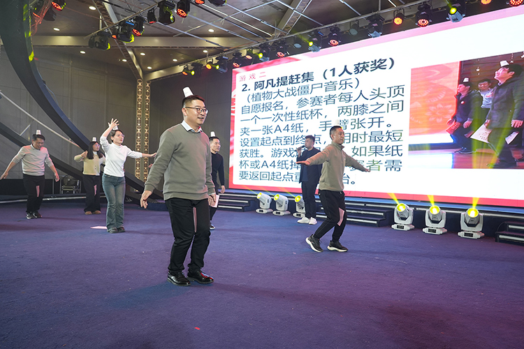 第二会场,公司为大家准备了丰盛的晚宴,以示庆祝。身股结束后大家齐聚第二会场尽享美酒佳肴。晚宴期间,“惊喜来电”“蒙眼吃香蕉”等趣味游戏轮番上阵,更有华为mate 70手机、戴森吹风机、小米电动牙刷等“幸运大抽奖”惊喜不断。