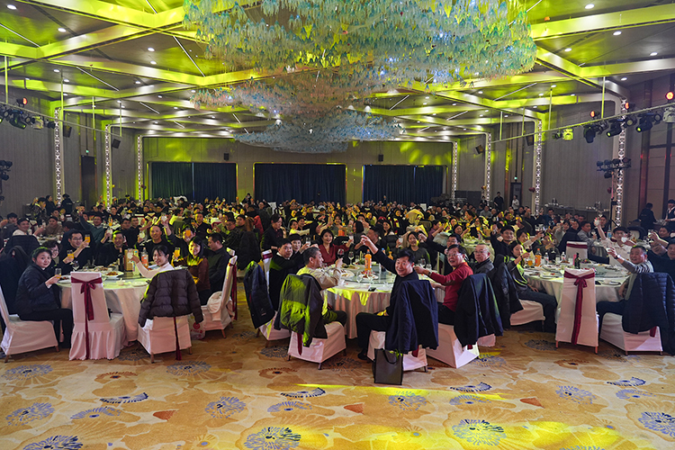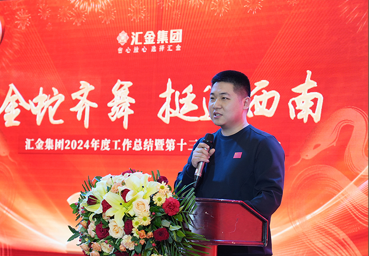 会上,郭荣勋董事长对嘉宾的到来表示热烈欢迎,并对汇金集团全体员工这一年的辛苦付出表示衷心感谢。随后郭董回顾了集团2024年取得的成绩,并对2025年的发展进行了部署。郭董表示:2024年,汇金集团取得了历年最好成绩,身股激励、物流采购降本等措施也卓有成效,全员分红实现了翻一番。展望2025,公司将坚持“三共赢”理念不动摇,做“又好又便宜”的产品,利用西南资源优势,进一步提高磷铁、磷铁粉等产品市场占有量,加大水泥阶梯炉、电力陶瓷磨辊、小苏打、焊材等产品销售推广力度。同时,寻找新领域、新赛道,力争2025年全员分红再翻一番。