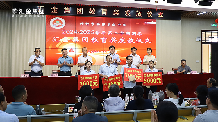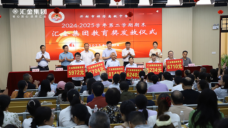 2025年8月30日上午,开封市祥符高中2024—2025学年第二学期“汇金集团教育奖”发放仪式在该校隆重举行。河南汇金集团董事长郭荣勋、ceo兼总裁孔攀红,祥符高中校方领导、获奖教师等出席了仪式。本次“汇金集团教育奖”以表彰该校教学成绩优异的教师为主,共计发放奖金6.4万元。