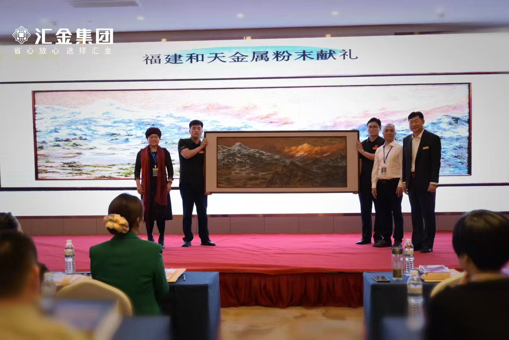 鄂州金刚石协会秘书长严陶在交流中表示:汇金集团让客户省心放心的服务初心,以及敢为人先、不断拼搏的精神,是我们选择长期合作的关键。其间,福建和天金属粉末、江苏华昌分别以石材画作、书法相赠,笔墨与匠心传递对汇金的认可与期许。