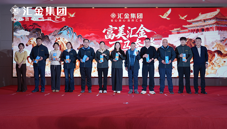 会上,郭荣勋董事长代表集团向全体员工致以诚挚的新年祝福,并对汇金人在过去一年取得的成绩给予了高度肯定。他指出,2025年面对经济寒流席卷、行业内卷加剧的严峻形势,集团各公司团结一致,不仅圆满达成了年初既定的8亿元战略目标,更实现了年度增收1亿元的辉煌业绩,创下了集团有史以来的最高增幅。这正是“一群人、一整年、一件事、干到底”的决心与勇气的胜利。郭董强调,2026年是汇金集团跨越发展的关键之年,并号召全体汇金家人继续发扬不畏艰难的精神,手挽手、肩并肩,以更加饱满的热情去迎接新的挑战。